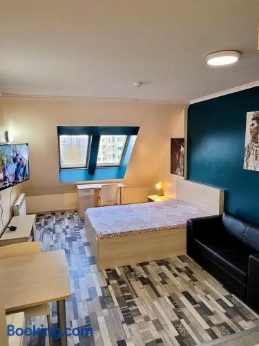 Luxurious AmenitiesRomantic Studio in Sofia boasts air conditioning, complimentary WiFi, and private parking, ensuring a comfortable and convenient stay for guests.Convenient LocationSituated near major landmarks such as Sopharma Business Towers and Sofia Ring Mall, this non-smoking property provides easy access to popular attractions and transportation hubs like Vasil Levski Stadium Station.Modern ComfortWith a fully equipped kitchen, a flat-screen TV, and proximity to Sofia Airport, guests can enjoy a modern and stress-free experience at Romantic Studio.Experience luxury and convenience at Romantic Studio in Sofia. Book now for an unforgettable stay!