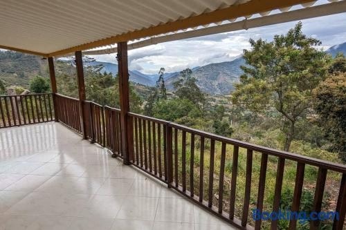 Casa campestre con vista a Cáqueza se află în Cáqueza, la 49 km de Piața Bolivar, și oferă WiFi gratuit, o grădină și parcare privată gratuită. Proprietatea se găsește la 50 km de Biblioteca Luis Ángel Arango și oferă o terasă.