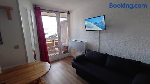 Les aiguilles d'or se găsește în L'Alpe-d'Huez, la 1,8 km de Alpe d'Huez, într-o zonă unde oaspeții pot desfășura hiking. Acest apartament oferă cazare și un balcon.
