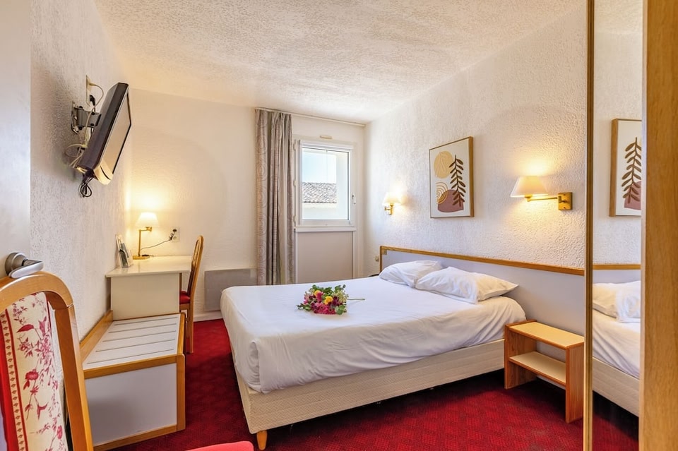 Accomodation Building only - Both reception and restaurant are centralised at Logis Le Cours 300 meters away at 10 avenue Francois Griffeuille 30800 St Gilles.All keys must be collected from Logis Le cours.