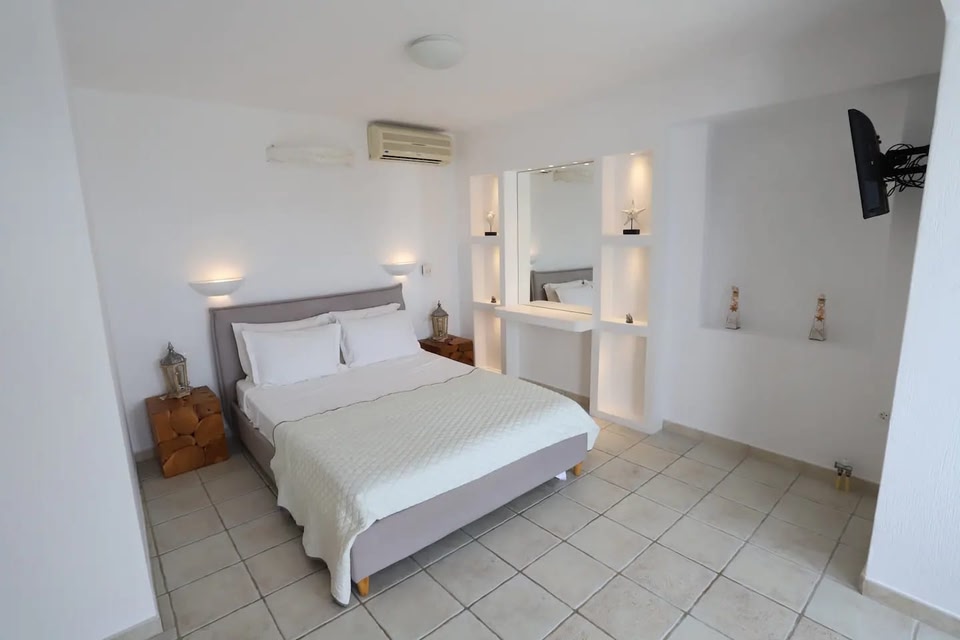 In the total-white Cycladic island with the vibrant blue beaches, you will find Aerides Villas. In Choulakia, a quiet place but not far from Mykonos Town (just 4km from Chora) Aerides Villas promises an unforgettable stay! The panoramic view of the Aegean with the unique sunset will be something you are going to remember for a long time! The houses are fully equipped, thus making them the ideal choice for a long-term stay in Mykonos. All houses provide: Fully equipped kitchen Electrical appliances Washing machine Towels & Bed linen Printer & Screen Parking space Daily housekeeping Airport/Port Transfer Air Conditioning / Heating Wifi BBQ Aerides is close to a popular beach & restaurants. For anything you need you may contact the property's manager. We will be glad to assist you, to choose your everyday activities and also recommend you the best restaurants, beach bars and clubs where you can enjoy Greek and traditional mykonian recipes, relax by the sea and party as much as you want.