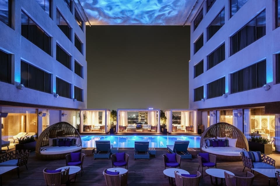 Great care is taken to ensure guests experience comfort through top-notch services and amenities.Remain linked during your visit by utilizing the complimentary internet access available.Prior to your check-in date, you can arrange airport transportation services, guaranteeing a seamless and efficient experience for both arrival and departure. Services offered by taxi and car hire at the hotel ensure effortless exploration of Indore.The hotel offers complimentary parking for guests who arrive with their own mode of transport.Effortlessly plan your daily activities and travel requirements with concierge service, luggage storage and safety deposit boxes provided by the front desk services. For extended visits or whenever required, the dry cleaning service and laundry service ensures your preferred travel garments remain clean and accessible. During leisurely days and evenings, in-room amenities such as 24-hour room service, room service and daily housekeeping enable you to maximize your stay in the room.Crafted for coziness, every guestroom provides an array of features, guaranteeing a tranquil night's sleep while maintaining the level of comfort. For a more enjoyable stay, select rooms at hotel are equipped with linen service, blackout curtains and air conditioning. For certain chosen rooms, guests can enjoy in-room amusement like daily newspaper and television as a part of their stay.Rest assured that your hydration needs will be met, as some guestrooms are equipped with a refrigerator, a coffee or tea maker, bottled water and mini bar. Maintain your cleanliness and comfort using a hair dryer, toiletries and bathrobes available in select guest restrooms. Each morning at The Park Indore, a scrumptious, homemade breakfast kick-starts the day. Begin your holiday mornings right with your essential cup of coffee, offered daily at the cafe on-site.During your visit, indulge in a range of delightful culinary choices at hotel to enhance your experience. Concerned about your dining preferences? Fret not! The Park Indore offers an assortment of culinary varieties featuring halal choices, catering to all tastes. Enjoy an entertaining evening alongside your fellow travelers at hotel's very own bar and nightclub. Snack vending machines operate around the clock, providing you with easy access to treats regardless of the hour.Indulge in the numerous pursuits available at The Park Indore. Treat and spoil yourself by taking a trip to salon.Begin your holiday perfectly by taking a plunge into the swimming pool.At the hotel, enjoy a laid-back beverage experience by the poolside bar, sipping on a soothing cocktail. Eliminate those holiday calories by stopping by hotel and making use of their well-equipped exercise amenities.