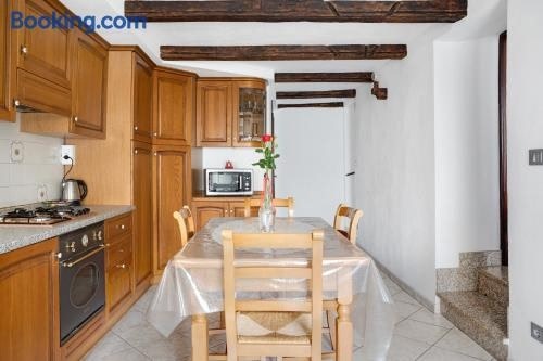 Pin e cele se află la aproximativ 26 km de Castello della Manta și oferă vedere la munte, un patio și o grădină.