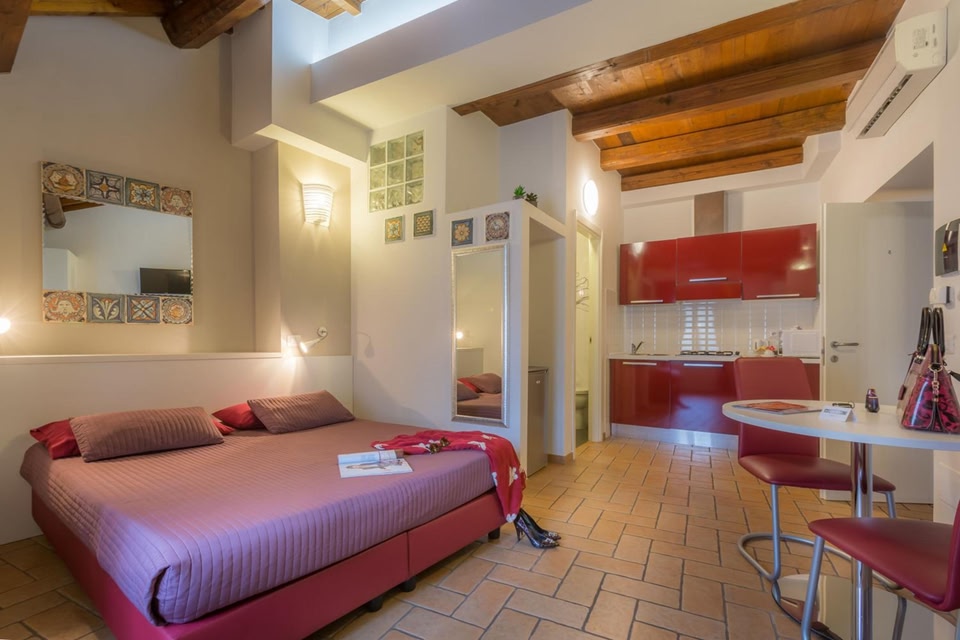 Elegantly Rustic Self-Catering Studios and RoomsExperience the charm of Viterbo at Saffi 103, where you can enjoy beautifully designed self-catering studios and rooms. Each accommodation is equipped with modern amenities including air conditioning and a flat-screen TV. The studios go a step further with a fully equipped kitchenette and exposed wood-beamed ceilings, adding a touch of rustic elegance to your stay.Convenient LocationSituated just a short 10-minute walk from Viterbo Cathedral, Saffi 103 offers easy access to the city's main attractions. Additionally, the property's proximity to Lake Bolsena and a one-hour drive to Rome makes it an ideal base for exploring the surrounding areas.Free Wi-Fi and MoreStay connected with complimentary Wi-Fi available throughout the property. Whether you're here for business or leisure, our modern amenities cater to all your needs. Book your stay at Saffi 103 now and indulge in a truly memorable experience.
