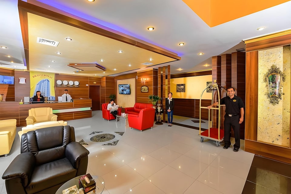Great care is taken to ensure guests experience comfort through top-notch services and amenities. Stay connected with your associates, as complimentary Wi-Fi is available during your entire visit. The hotel offers taxi, car hire and shuttle amenities for your ease in navigating around Kuwait. When arriving by car, you'll be grateful for the on-site complimentary parking at hotel. The hotel offers reception amenities including concierge service, express check-in or check-out, luggage storage and safety deposit boxes to ensure a comfortable stay for guests. Whether it's an extended stay or simply needing fresh attire, laundromat, dry cleaning service and laundry service provided by hotel ensures your cherished travel garments stay spotless and accessible.Your stay will be comfortable with the presence of 24-hour room service, room service and daily housekeeping as an in-room amenity for your relaxation and enjoyment.Need something at the last minute? The convenience stores has you covered, ensuring your requirements are met without any inconvenience. Smoking is permitted solely in the specified smoking zones allocated by hotel. In order to ensure the utmost level of relaxation, the guestrooms feature an inviting design and are equipped with all basic necessities, creating a delightful stay experience.To ensure a pleasant stay, a selection of rooms at hotel come furnished with linen service, blackout curtains and air conditioning, all designed with your ease in mind. Several chosen accommodations at Bravo Royal Hotel Suites have a separate living room incorporated into the room design. In select rooms, visitors can enjoy a touch of amusement with the availability of television and cable TV for their entertainment needs. Within specific rooms, a refrigerator, a coffee or tea maker, bottled water, instant coffee, instant tea and mini bar is conveniently available for your use. Understanding the significance of bathroom facilities in enhancing visitor contentment, hotel offers a hair dryer and toiletries within a few chosen chambers. Start your day stress-free at Bravo Royal Hotel Suites as breakfast is made available for you on the premises.How about kicking off each day of your getaway with a delicious cup of coffee? At the hotel, relish in the invigorating taste of a freshly brewed, excellent coffee.Various excellent meal offerings at hotel ensure that enticing and easily accessible options are constantly available. Visitors with specific dietary preferences can savor a variety of culinary styles at Bravo Royal Hotel Suites, featuring halal choices to accommodate their needs.Upon your arrival, don't miss experiencing bar for enjoyable in-house evening entertainment.Visitors wishing to create their personal culinary delights will appreciate the on-site shared kitchen provided at this establishment. Throughout the day, engage in the entertaining activities available at Bravo Royal Hotel Suites.Make sure to utilize your privilege to access the exclusive beach located at hotel, during your stay. Unwind by the pool at hotel and cherish a leisurely moment.