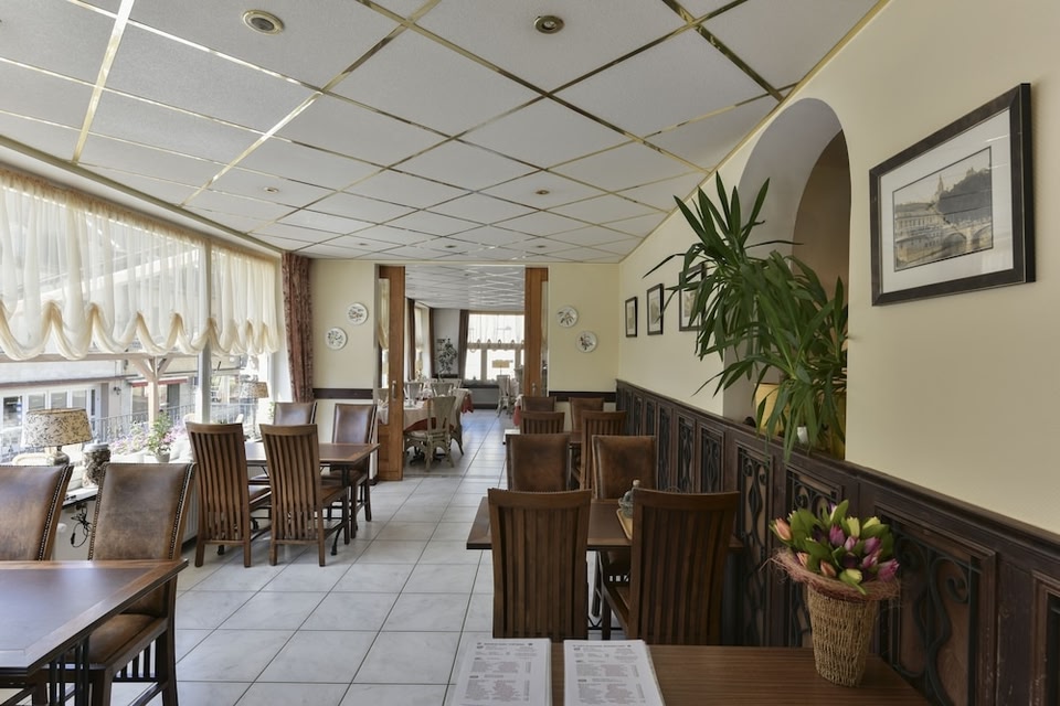 Location : With a stay at Grand Hotel de Vianden in Vianden (Luxembourg Ardennes), you'll be within a 15-minute walk of Vianden Castle and Maison de Victor Hugo. This hotel is 0.2 mi (0.4 km) from Vianden Chairlift and 0.3 mi (0.4 km) from Museum of Caricature and Cartoon. Amenities : Enjoy recreation amenities such as bicycles to rent or take in the view from a terrace. This hotel also features complimentary wireless Internet access, wedding services, and tour/ticket assistance. Attractions : Distances are displayed to the nearest 0.1 mile and kilometer. Maison de Victor Hugo - 0.2 km / 0.1 mi Vianden Chairlift - 0.4 km / 0.2 mi Museum of Caricature and Cartoon - 0.4 km / 0.3 mi Trinitarian Church - 0.4 km / 0.3 mi Vianden Castle - 0.8 km / 0.5 mi Indian Forest Adventure Park - 1.2 km / 0.7 mi German-Luxembourg Nature Park - 3 km / 1.9 mi National Museum of Military History - 11.9 km / 7.4 mi National Museum of Historical Vehicles - 12 km / 7.5 mi Deiwelselter - 13.7 km / 8.5 mi Naturpark Our - 14.8 km / 9.2 mi General Patton Monument - 16.4 km / 10.2 mi Castle Beaufort - 16.9 km / 10.5 mi General Patton Memorial Museum - 17.6 km / 10.9 mi Mittleres Ourtal zwischen Dreiländereck und Relles Mühle - 22.4 km / 13.9 mi The preferred airport for Grand Hotel de Vianden is Luxembourg (LUX-Findel) - 52.8 km / 32.8 mi business_amenities : Featured amenities include multilingual staff, luggage storage, and a safe deposit box at the front desk. Planning an event in Vianden? This hotel features 0 square feet (0 square meters) of event facilities. Dining : Enjoy a satisfying meal at Jardin d Hercules Poirot serving guests of Grand Hotel de Vianden. Wrap up your day with a drink at the bar/lounge. Buffet breakfasts are available daily from 7:00 AM to 10:00 AM for a fee. HeadLine : Near Vianden Castle Rooms : Make yourself at home in one of the 57 guestrooms. Complimentary wireless Internet access is available to keep you connected. Private bathrooms with bathtubs or showers feature complimentary toiletries and hair dryers. Conveniences include safes and complimentary bottled water, and housekeeping is provided daily.