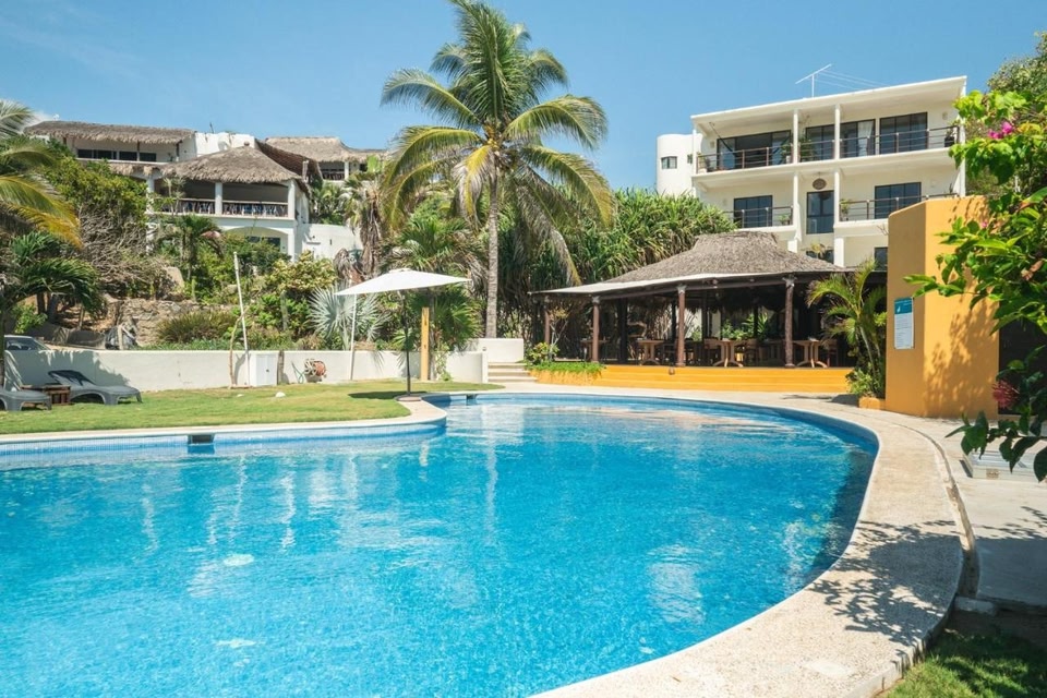 Facing the beachfront, Manta Raya Hotel - right on the beach offers 3-star accommodation in Cuatunalco and features an outdoor swimming pool, garden and terrace.