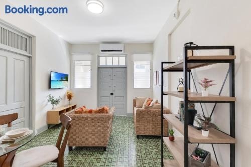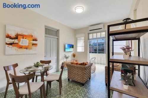 Bright Apartment in Miramar with Equipped Bathroom and Prime Location se află în San Juan, la numai 13 minute de mers pe jos de Plaja Condado și la 1,6 km de Muzeul de Artă Puerto Rico, și include un balcon.