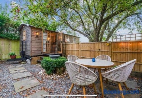 Die Unterkunft Glen Erin Hut besticht durch Gartenblick und Übernachtungsmöglichkeiten mit einer Terrasse und einer Veranda / Patio, ungefähr 29 km von Safaripark Longleat entfernt.