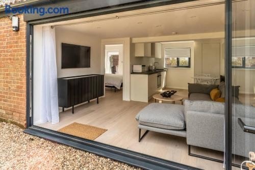 Modern self contained one bedroom with garden se află în Sheering și oferă WiFi gratuit și vedere la grădină. Acest apartament se află la 27 km de Reședința Audley End și la 28 km de Hylands Park.