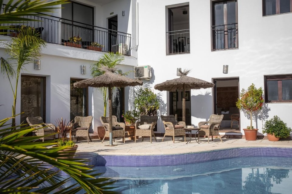 Las Palmeras del Califa is next to Plaza de España in the charming hilltop town of Vejer de la Frontera. It offers an outdoor pool and elegant rooms with a balcony.