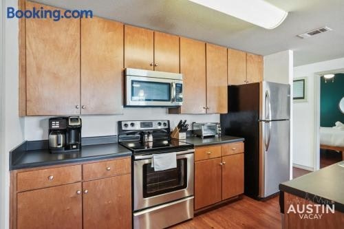 Located in Austin, 4.6 km from University of Texas at Austin and 5.2 km from Texas Memorial Stadium, Stylish 4BR with Smart TV and Free Garage Parking offers air conditioning.