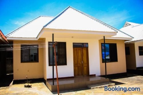 The Connected Living Lodge with AC, Wi-Fi and Netflix se află în Tanga și pune la dispoziție cazare cu WiFi gratuit și vedere la grădină, precum și o grădină și o terasă.