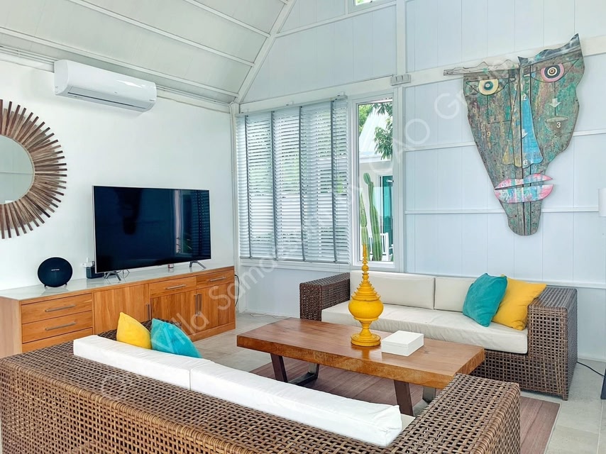 One Villa Samaesarn se găsește în Ban Samae San, la 22 km de Terenul de golf Eastern Star, și oferă o piscină în aer liber, o grădină, un lounge comun și parcare privată gratuită.