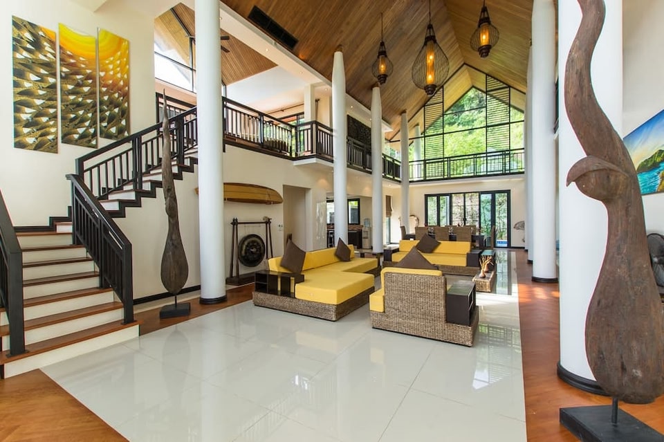 Rawai is home to this vacation home. Patong Go-Kart Speedway and Phuket Offroad Fun Park and Ratsada Pier are worth checking out if an activity is on the agenda, while those in the mood for shopping can visit Bangla Road and Jungceylon Shopping Center. Rawai Park and Dino Park Mini Golf are also worth visiting. Located in Rawai, this welcoming vacation home brings it all within your reach. With the property's convenient onsite parking, you'll be ready to make the quick 3-minute drive to Nai Han Beach or the 6-minute drive to Rawai Beach.After you return, you can unwind by the private pool or sip a drink in the garden; you may also like the balcony or patio and BBQ grill. For a change of scenery, come inside and enjoy the TV. As you settle into this 4-bedroom rental, you'll find a sitting area, a dining area, premium bedding, and air conditioning. Bathroom amenities include a rainfall showerhead, along with a hair dryer, bathrobes, and towels. The kitchen is equipped with an oven, a full-sized refrigerator/freezer, and a dishwasher, as well as a coffee maker, an electric kettle, and a microwave. And because there's a washing machine, you can go a bit lighter on your packing.